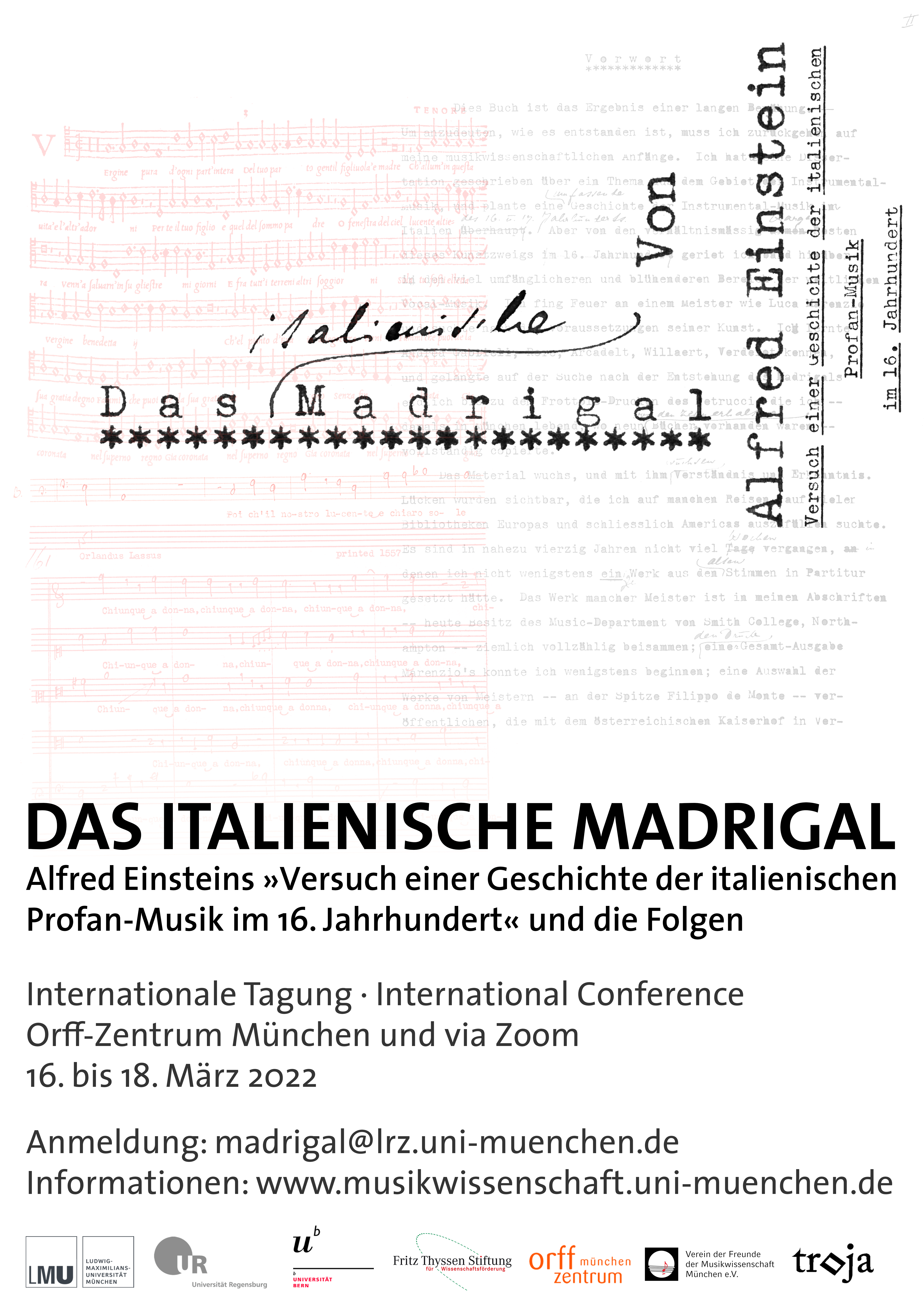 Vom 16. bis zum 18. März 2022 findet im Münchner Orff-Zentrum eine Tagung zu Alfred Einsteins Alfred Einsteins „Versuch einer Geschichte der italienischen Profan-Musik im 16. Jahrhundert“ statt. Ausgangspunkt der Konferenz, die ich gemeinsam mit Sebastian Bolz und Katelijne Schiltz organisieren darf, stellt Sebastians Wiederentdeckung der deutschen Erstfassung von Einsteins Buch dar. Ich selbst werde mich der Konferenz gemeinsam mit Ben Ory mit dem Einfluss von Einsteins Exilerfahrungen auf sein Nachdenken über die Musik der Frühen Neuzeit beschäftigen.