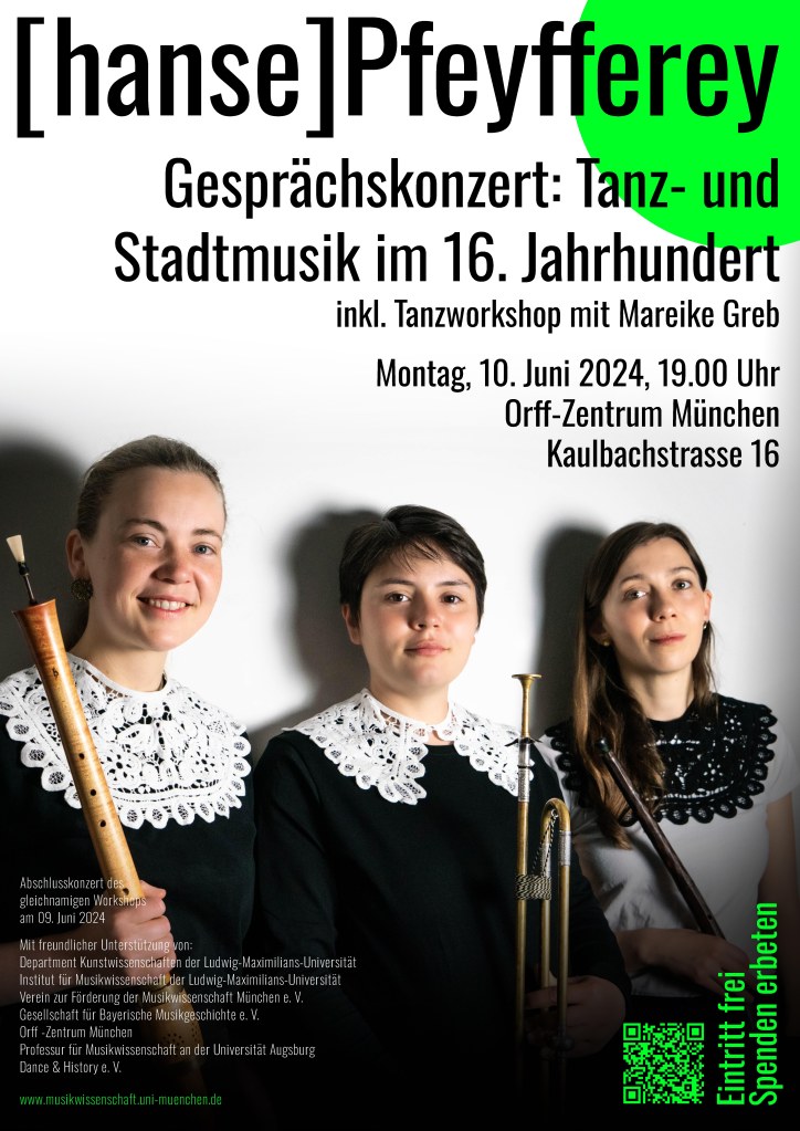 Gemeinsam mit Laura Dümpelmann, Dávid Budai und Katharina Preller organisiere ich im Juni zwei Veranstaltungen zum Thema Stadtmusik. Am 09. Juni 2024 findet ein Workshop statt, der sich mit Tanzmusikpublikationen aus dem Jahr 1555 beschäftigt (vgl. Abstract unten). Am 10. Juni 2024 um 19 Uhr findet dann ein Gesprächskonzert statt, bei dem das Ensemble [hanse]Pfeyfferey die Sammlung einer breiten Öffentlichkeit vorstellt. Beide Veranstaltungen finden im Orff-Zentrum München (Kaulbachstraße 16, 80539 München) statt. Nähere Informationen gibt es in Kürze auf dieser Seite und auf der Website des musikwissenschaftlichen Instituts der Universität München.