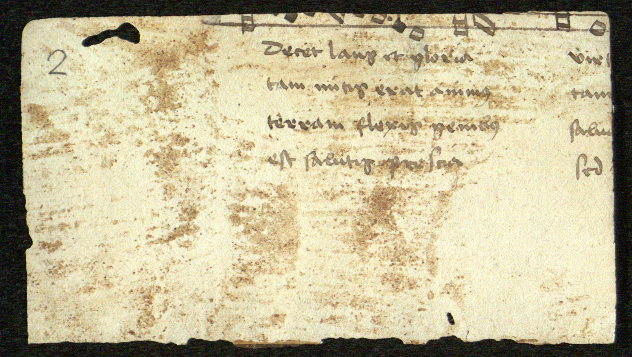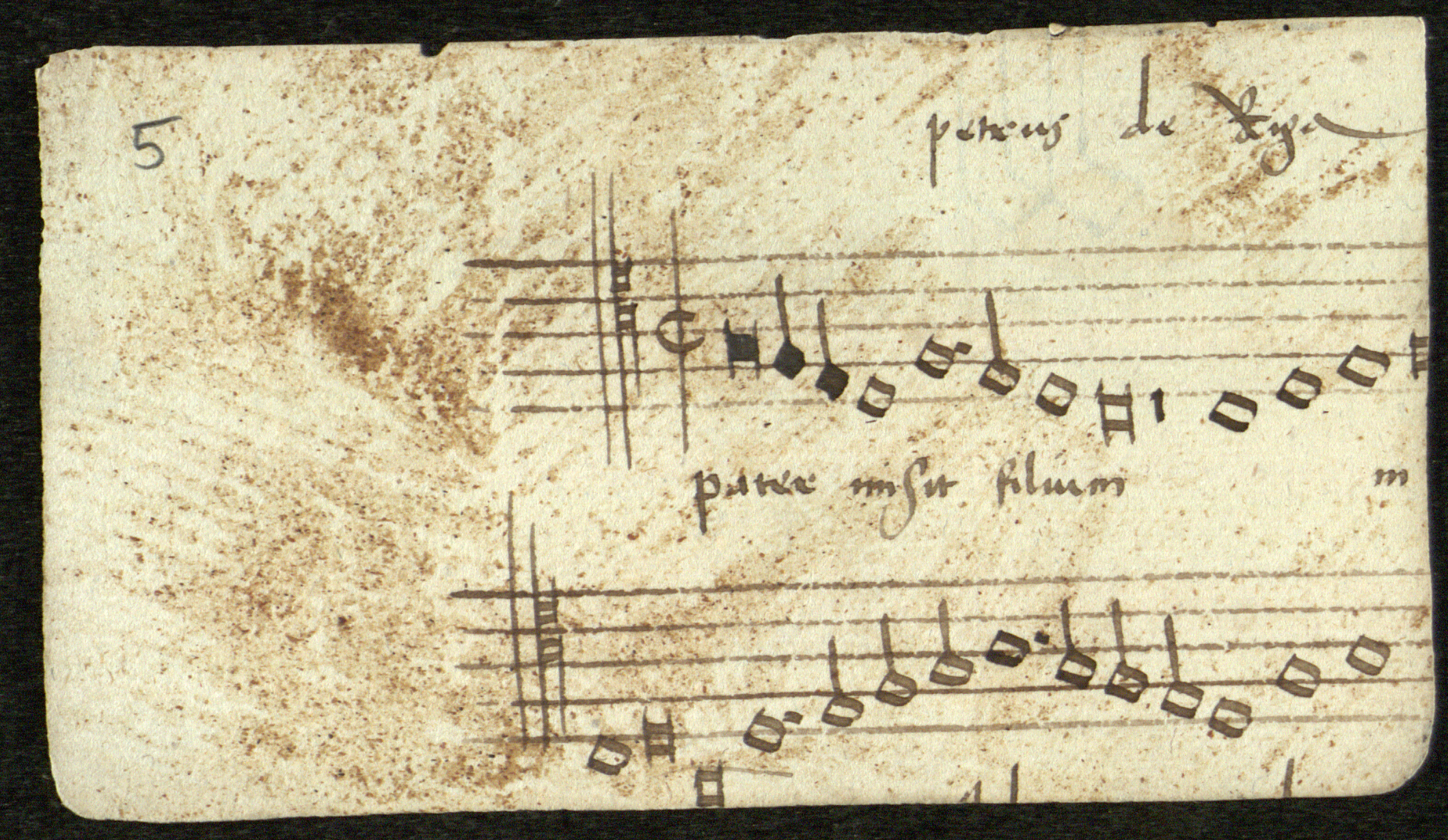 The news of unknown musical fragments from the early modern period aroused curiosity, and Franz Körndle immediately examined the manuscripts. Very quickly, their significance became obvious, as they contain parts of compositions attributed to Alexander Agricola, Paul Hofhaimer, Heinrich Isaac, and a certain Petrus de Riga. The notation and the manuscript point to the period around 1500 and the watermark can be traced back to Augsburg around 1517.