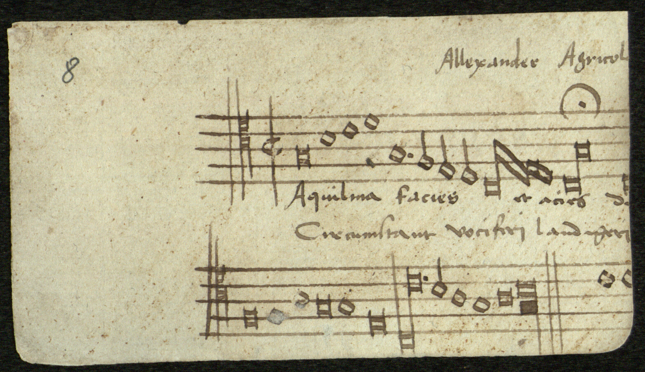 | 8r | Alexander Agricol[a] | C4 | Aquilina facies […] [2] | 2 strophes |